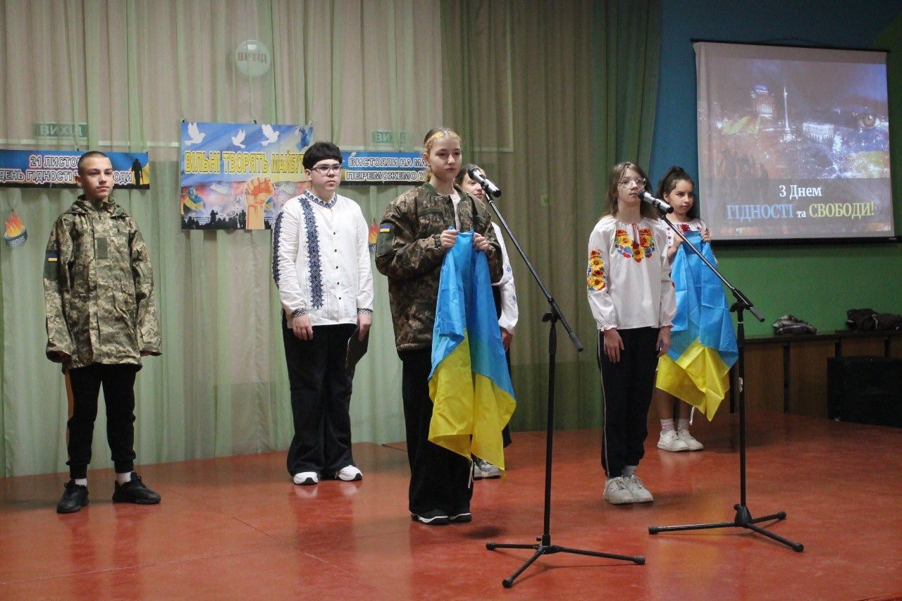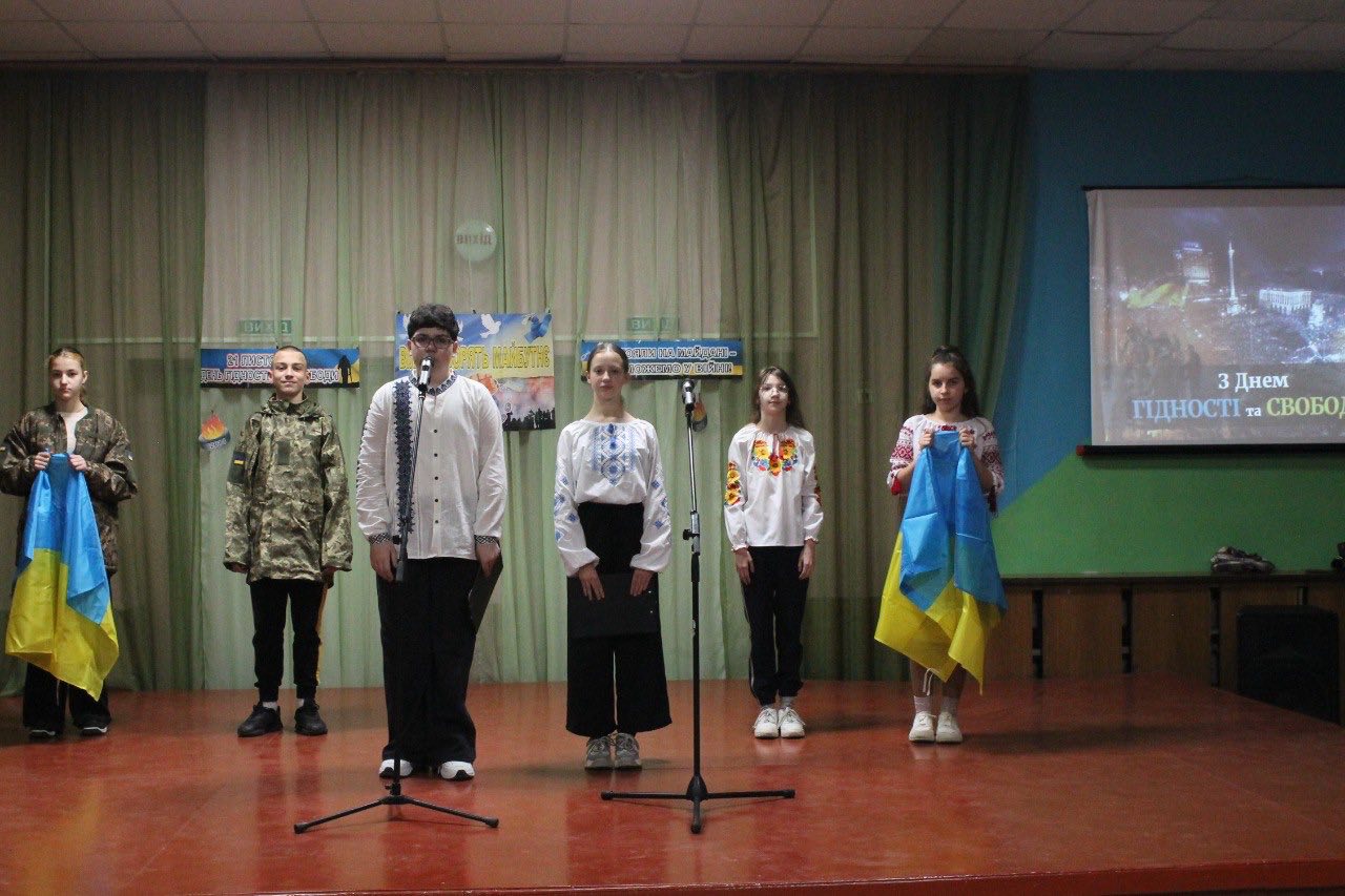 Сьогодні у нашій школі відбувся захід, присвячений Дню Гідності та Свободи. Ми вшановуємо пам’ять і мужність усіх українців, які стали на захист національних інтересів та демократичних цінностей.